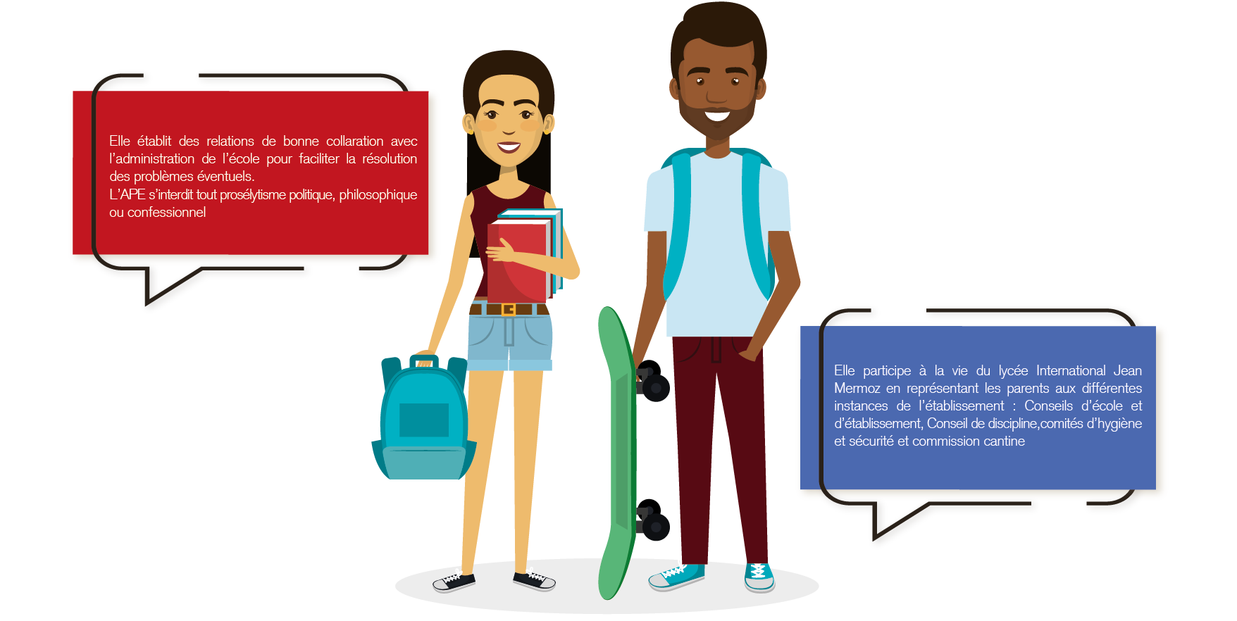 L’Association des Parents d’Élèves du Lycée international Jean Mermoz, APE-Mermoz est constituée de parents bénévoles. Fondée en juin 2017, elle est aujourd’hui l’association représentative des parents d’élèves au sein du Lycée international Jean Mermoz.