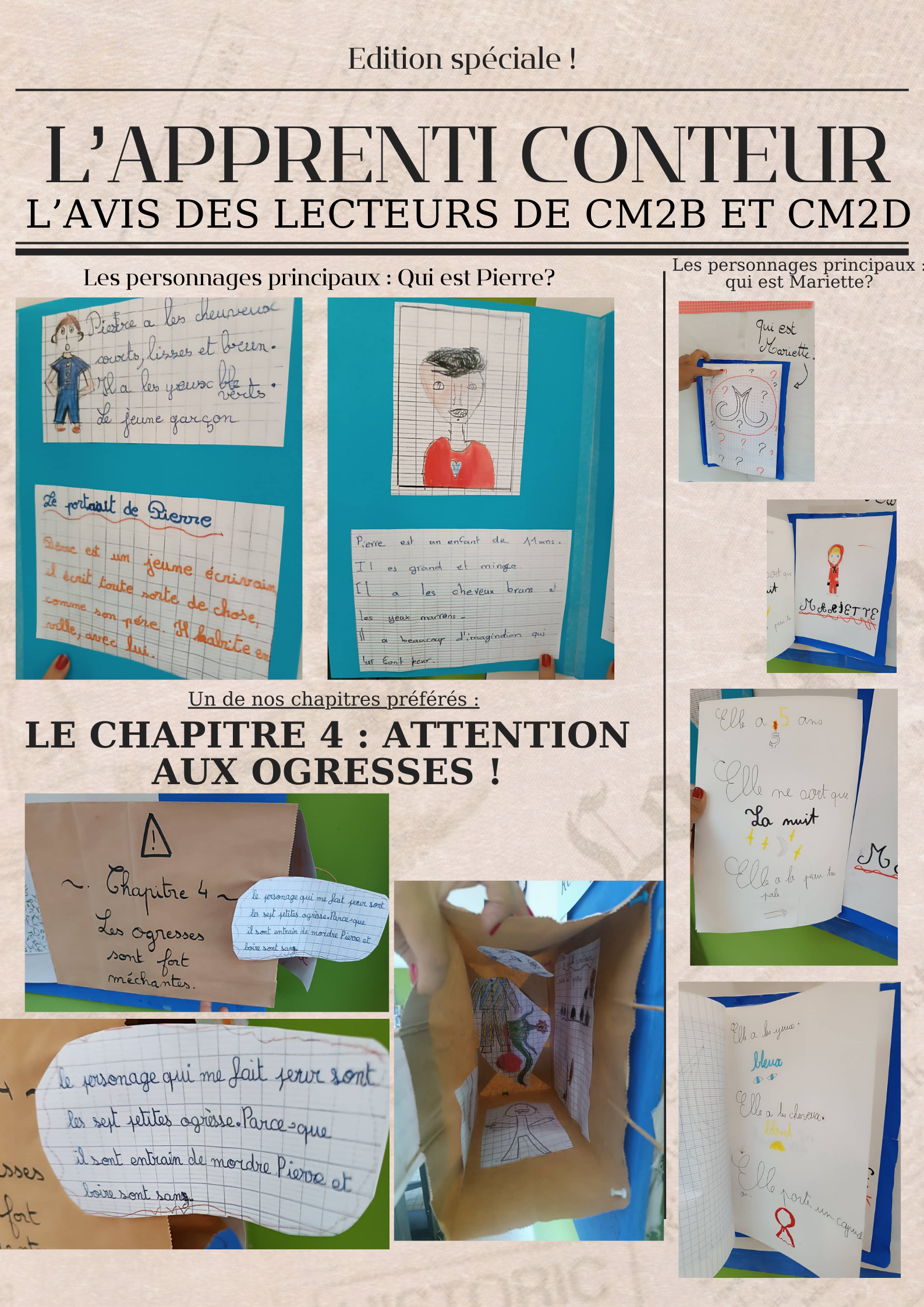 Les deux classes viennent d’achever la lecture du roman fantastique « L’Apprenti conteur », entamée dès le début de l’année. Ils ont réalisé des travaux et donné