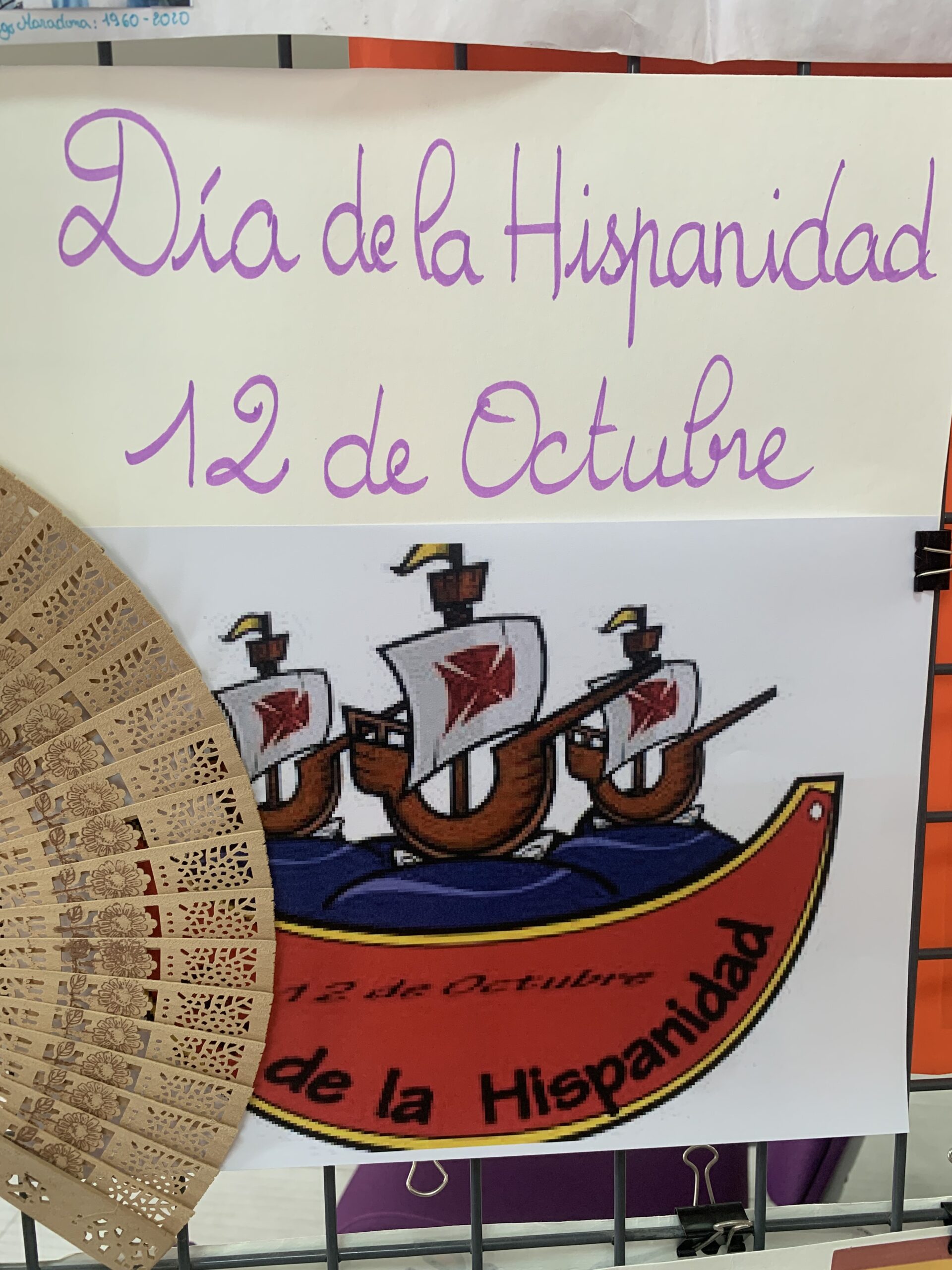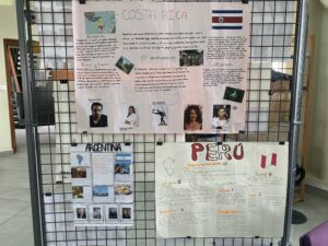 À l’occasion de la fête nationale espagnole, appelée « Día de la Hispanidad » (jour de l’hispanité), les élèves de la classe de 3èA, accompagnés de leur professeur d’espagnol, Mme Isabelle Najm, ont décoré, ce jeudi 12 octobre, une petite partie du CDI du lycée avec des affiches des pays hispanophones, préparées en binômes dans le cadre d’un projet de classe autour de la langue espagnole.