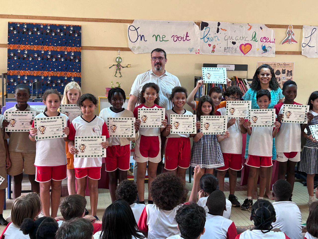 Lundi et mardi, les trois vainqueurs de chaque classe ont reçu un diplôme pour les féliciter et ont été vivement encouragés à continuer cette pratique qui a permis d’enregistrer des progrès notables dans leur lecture. L’ambiance festive, la joie et la fierté ressenties lors de la remise de ces diplômes à montrer un réel enthousiasme pour cette activité de la part des élèves.