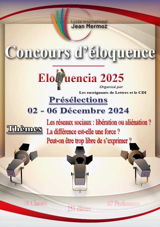 Le LIJM lance son traditionnel concours d’éloquence. Cette activité pédagogique, plus qu’une compétition, offre à nos élèves des classes de seconde l’opportunité de mettre en avant leur qualité d’orateur. Ils devront choisir parmi les propositions de thèmes, faire une rédaction argumentée, en binôme, et la présenter.
