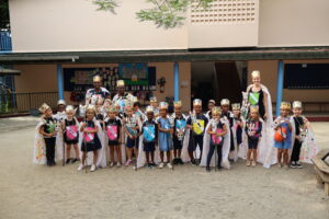Cette activité festive a vu la participation de l’ensemble des classes de maternelles accompagnées des enseignantes et de l’équipe de direction. Cet événement a vu la collaboration de certains élèves du secondaire, venus soutenir les plus petits lors du défilé.