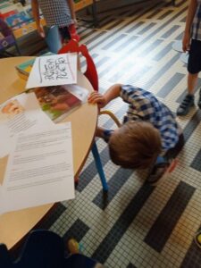 Pour lancer le Printemps des Poètes, les élèves de la TPS à la GS participent, selon leurs créneaux à la bibliothèque, à une chasse aux trésors de poèmes. Cette activité ludique a pour objectif de les initier à la poésie de manière interactive, en leur offrant l’occasion de découvrir des poèmes tout en suivant des indices dissimulés dans leur environnement scolaire.