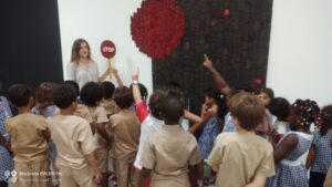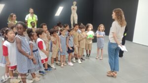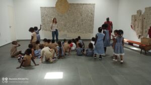 Le jeudi 14 décembre, la classe de CPC est allée à la galerie d’art Guirandou à côté de Mermoz, pour voir une exposition de l’artiste ANGE DAKOUA. On a appris qu’il fait de gris-gris avec du carton emballé avec du papier journal puis avec des fils blancs pour faire des quadrillages. Parfois il trempe les gris-gris dans la peinture noire, ou rouge ou bleue ou jaune. Puis il les attache tous ensemble pour faire des jolies œuvres d’art !