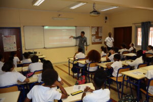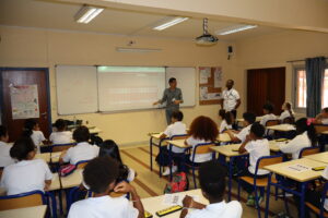 Monsieur Jim ZESIGER, conseiller pédagogique au LIJM, fait une présentation pratique de l’outil de calcul SOROBAN aux élèves du collège du lycée.