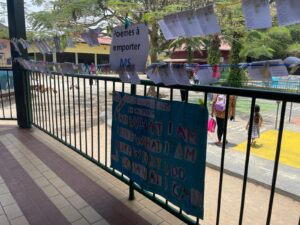 Dans le cadre du Printemps des Poètes, les élèves de l’école maternelle offrent aux familles des poèmes à emporter.
