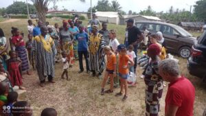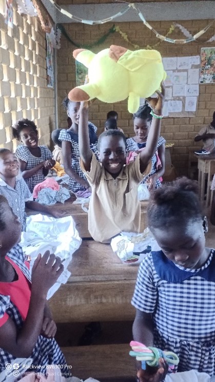 Samedi 4 février, quelques maitresses, parents d’élèves, élèves de Mermoz et des membres de l’association Afrikvillages se sont rendus au village de Petit Danané à 40 km d’Abidjan afin de distribuer jouets, vêtements, livres et chaussures aux 173 enfants scolarisés à l’école du village, construite grâce à l’action de l’association Afrikvillage. Un bel échange et des sourires grâce à tous les élèves et parents du cycle 2 de Mermoz ayant fait preuve d’une action solidaire au profit de l’association en réalisant les dons de tous ces cadeaux !!La matinée a débuté par la visite du village, suivie par la distribution des 173 colis aux élèves, enfin elle s’est finie par un gouter partagé.
