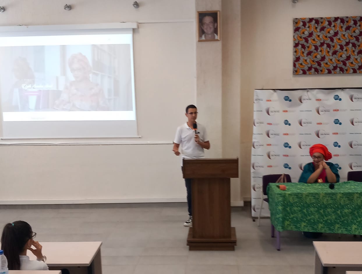 La rencontre a débuté par l’intervention de Yacine El Azaar qui à présenté l’écrivaine et celle de Raphaëlle Yakan et Clara Djofak qui ont résumé le dernier roman de notre invitée Cœur du Sahel.