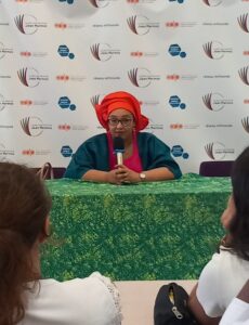 Les échanges ont porté sur la condition des femmes au Sahel, le rôle du livre et de l’écriture, et l’engagement féministe de notre invitée. La rencontre s’est terminée par une dédicace.