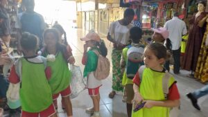 Un autre point fort de cette sortie a été la discussion autour des marchés dans le monde entier. Les enseignants ont animé une discussion comparative avec les élèves sur les marchés internationaux : ceux de l’Asie, de l’Europe ou encore de l’Amérique. Les élèves ont été invités à imaginer ce que pourrait être un marché dans un autre pays et à noter les différences avec le marché local. Cela a ouvert une réflexion intéressante sur les coutumes, les produits disponibles, ainsi que les méthodes de négociation dans d’autres cultures.