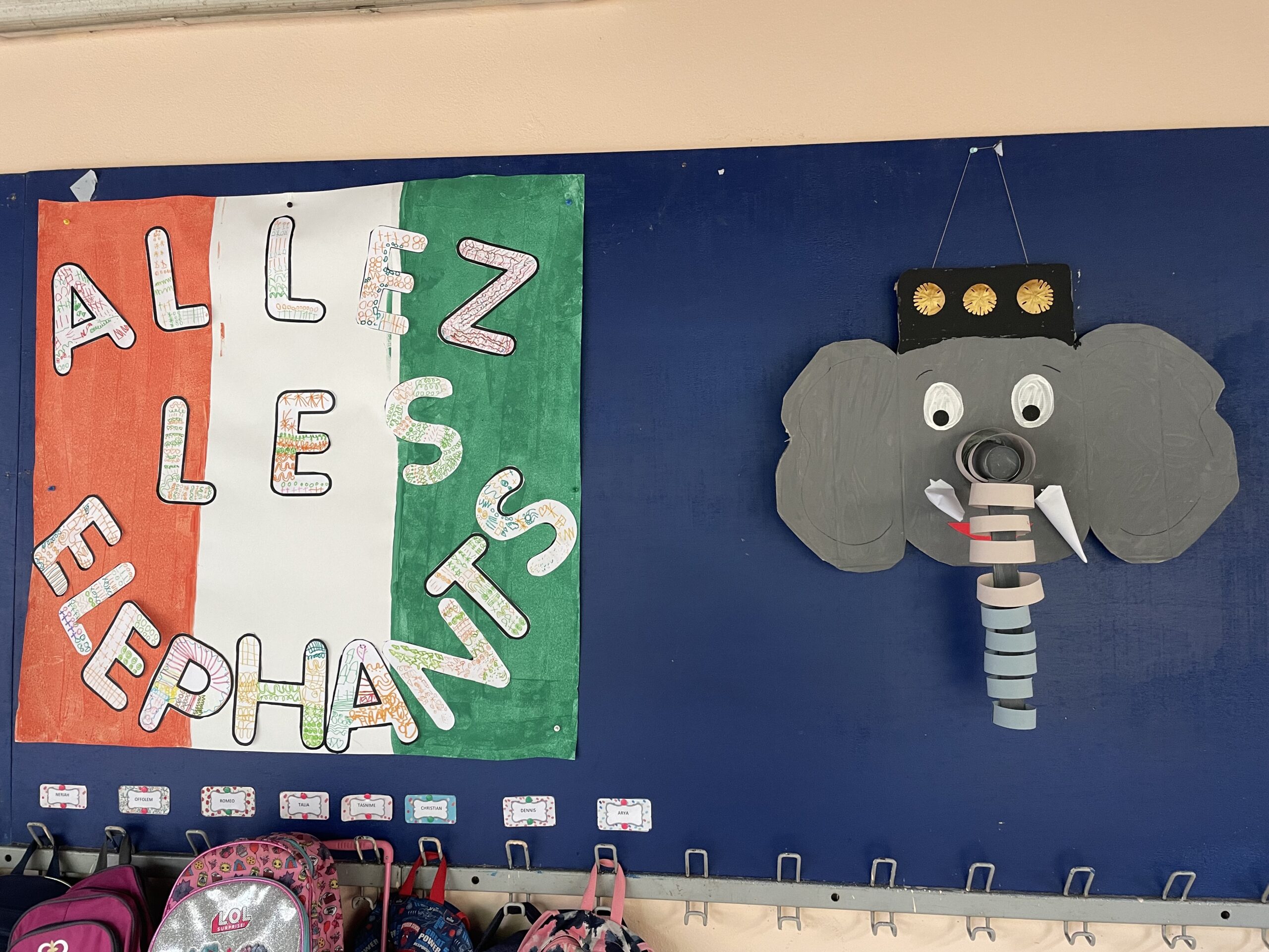 Tous derrière les éléphants, travail réalisé par les élèves de grandes sections du LIJM.