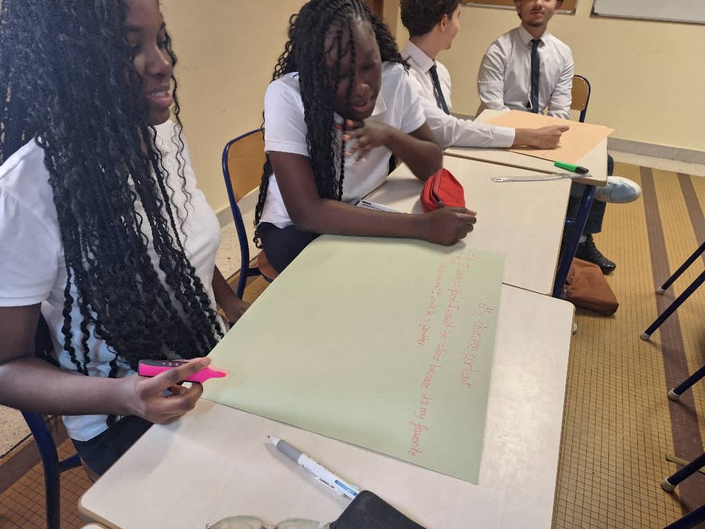 La première, dénommée speed meeting, consistait à échanger avec plusieurs camarades de classe à tour de rôle sur des sujets relatifs à la personnalité pendant un laps de temps tout en mémorisant le maximum d’informations sur chacun. Par la suite, des élèves volontaires racontaient à toute la classe tout ce qu’ils avaient appris sur ceux avec qui ils avaient échangé, ce qui fut un défi très agréable à relever pour nos élèves.