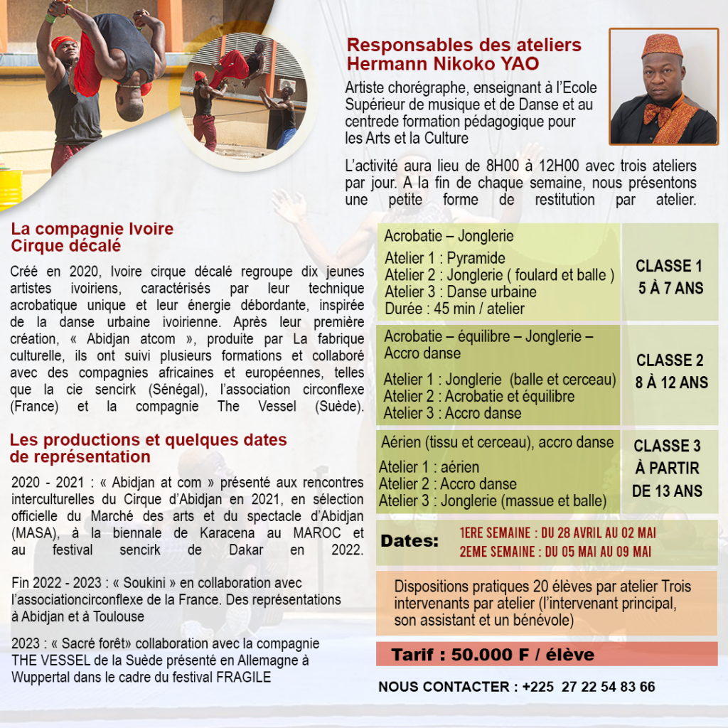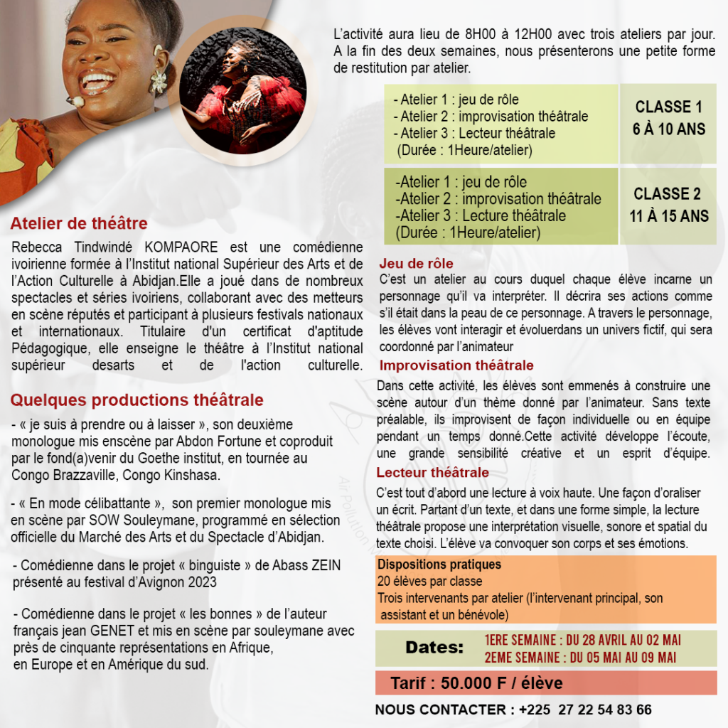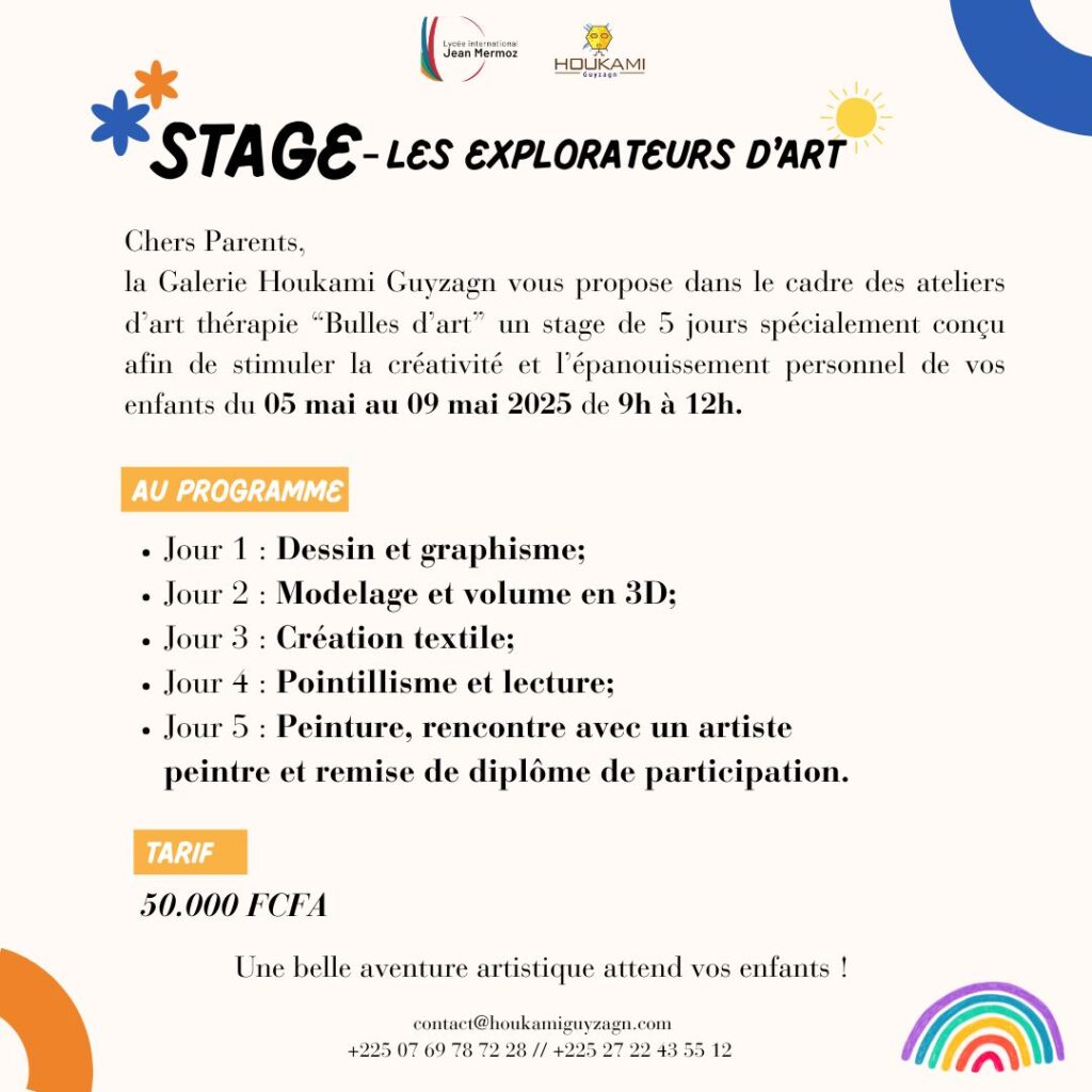 Nb : une nouvelle activité de découverte artistique a été ajoutée à la liste pour le bonheur de vos enfants.