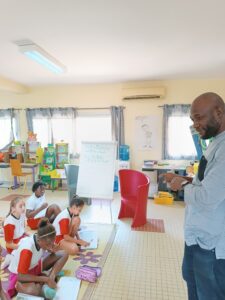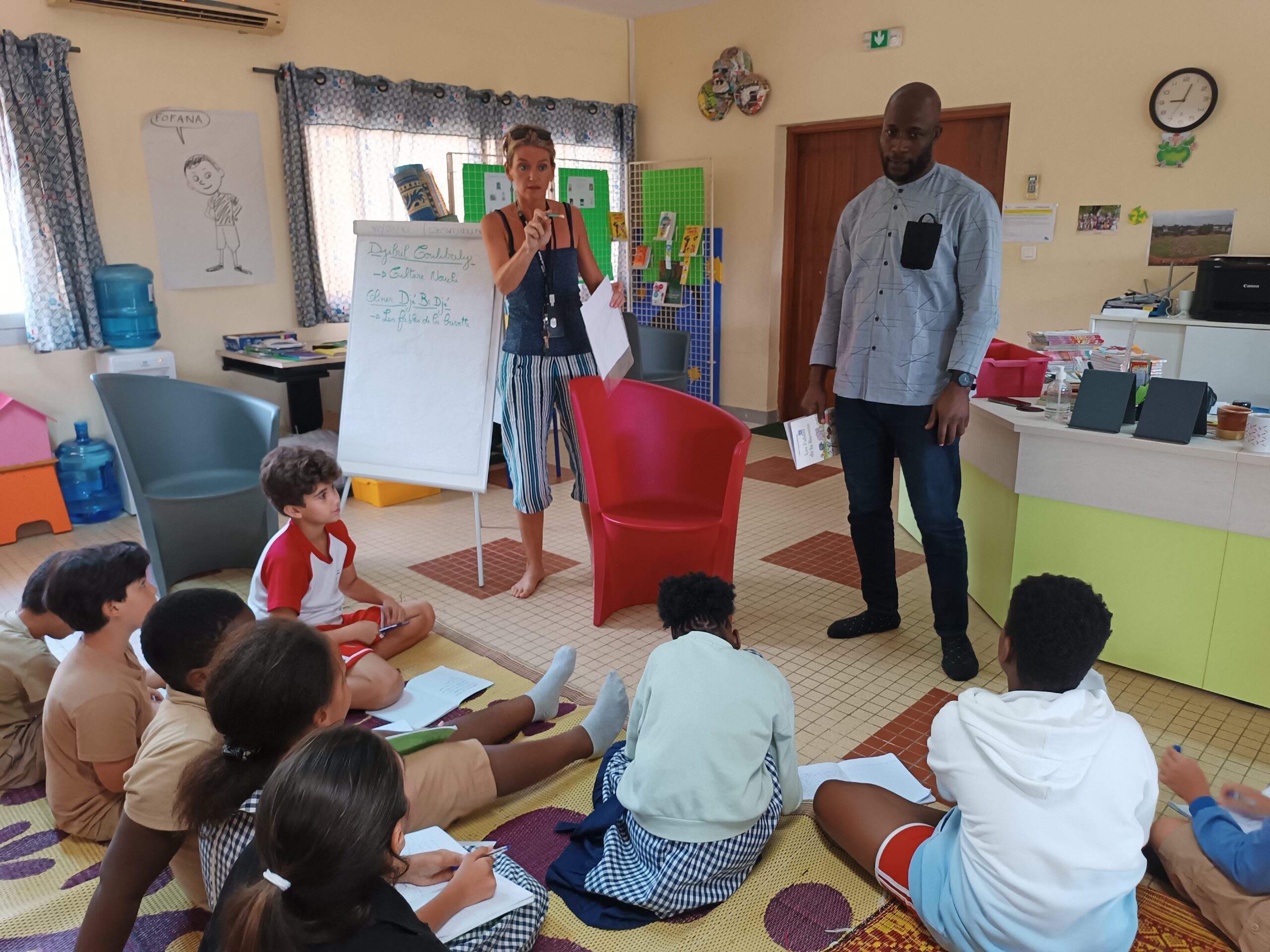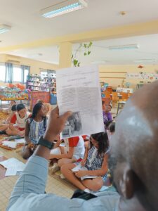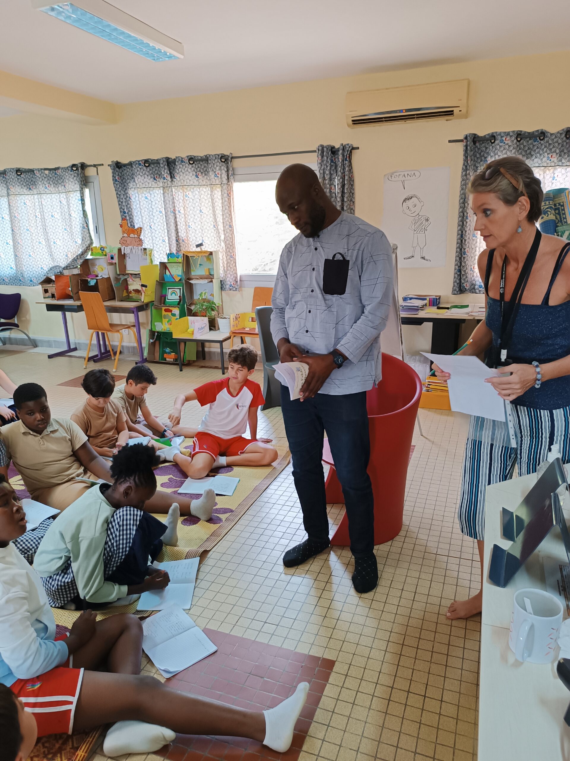 Première étape : les classes de CM2 ont rencontré Djibril Coulibaly de Culture Noushi. Il a joué les dictionnaires vivants, traduisant aux élèves les mots dont ils auront besoin pour recomposer leurs fables.