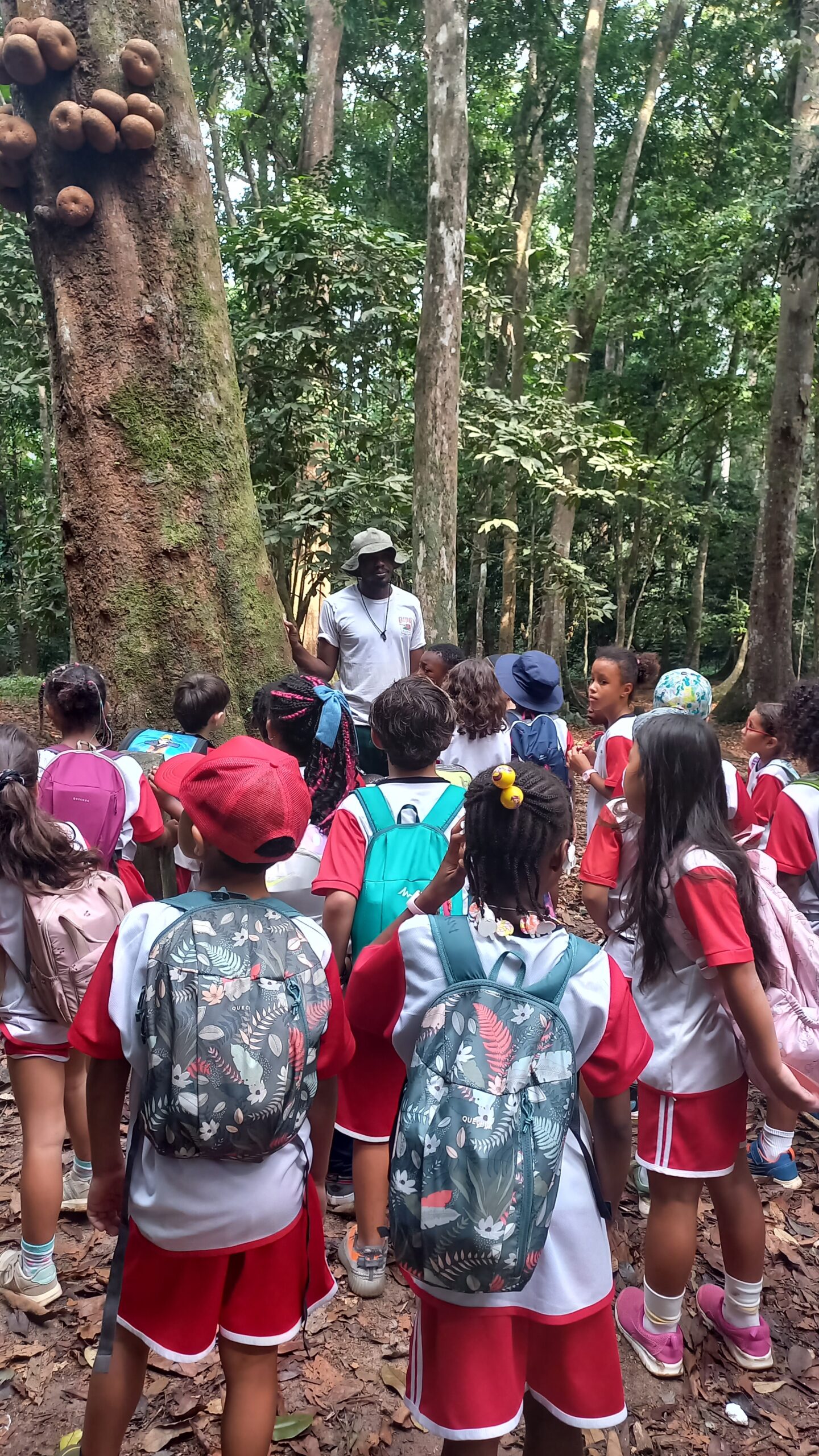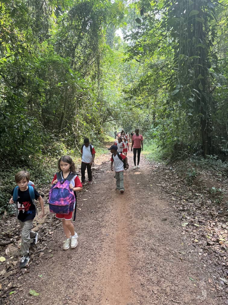 La semaine du 03 au 07 février, cinq classes de CE1 ont plongé au cœur de la majestueuse Forêt du Banco, véritable joyau de verdure au cœur d’Abidjan. Encadrés par leurs enseignants, un guide passionné et des parents, ces jeunes explorateurs ont découvert la richesse d’une forêt primaire, poumon vert de la ville.