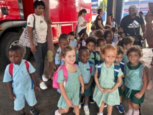 Les élèves ont pu découvrir de près les véhicules d’intervention et comprendre leur fonction principale. Ils ont également observé certains outils utilisés par les pompiers et ont même pu les manipuler avec l’aide des professionnels.