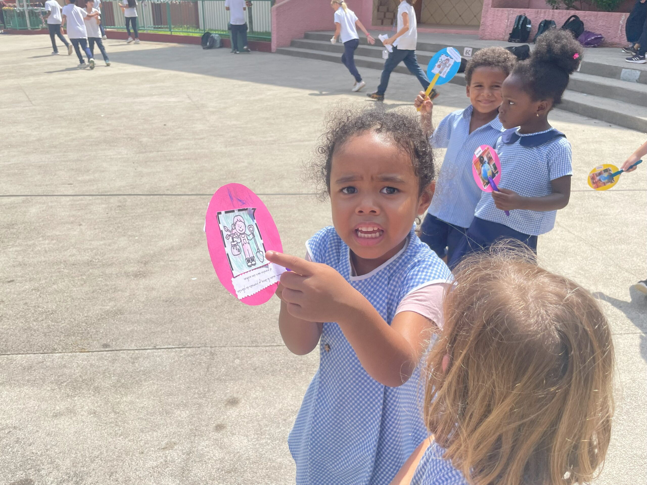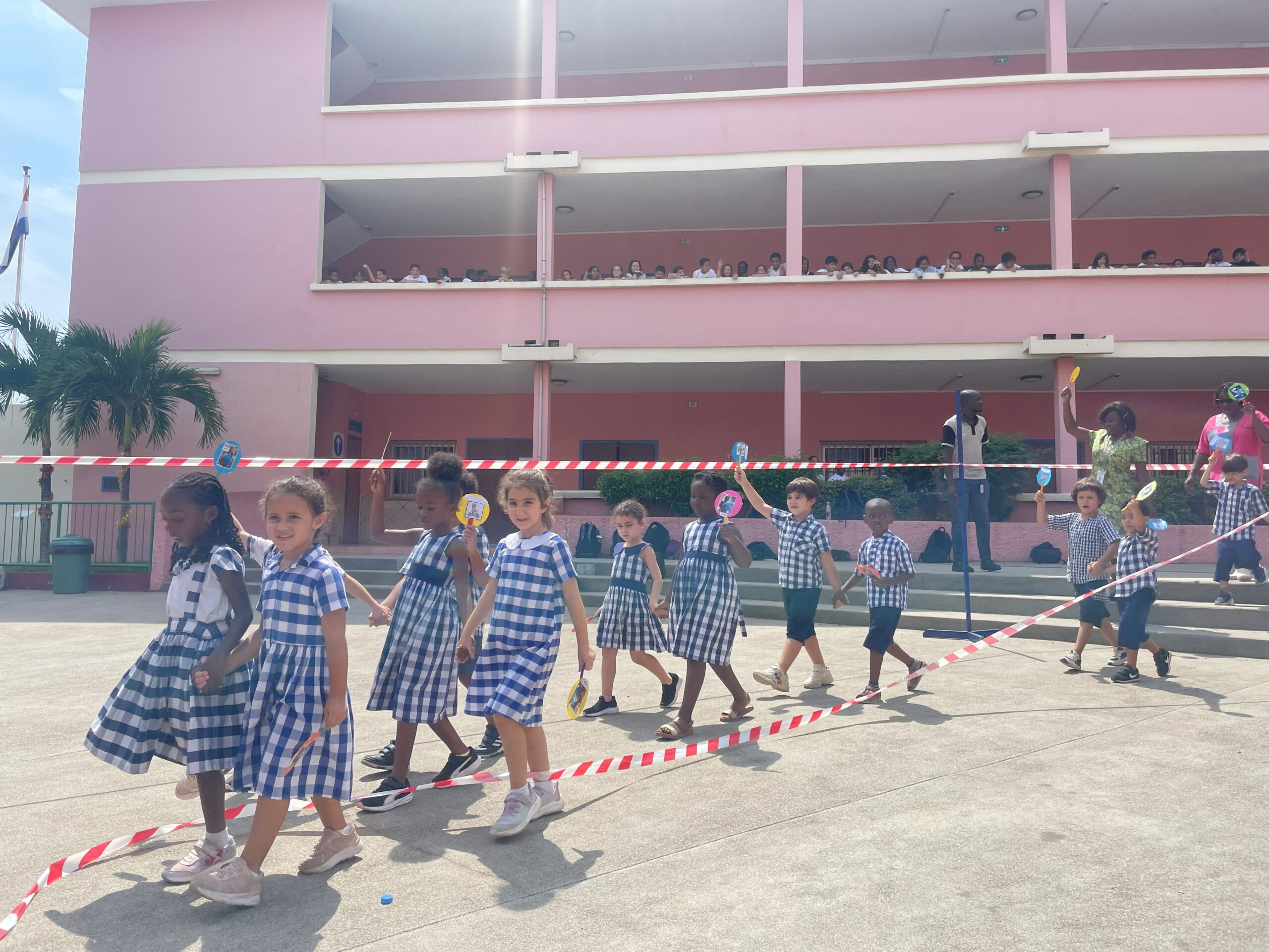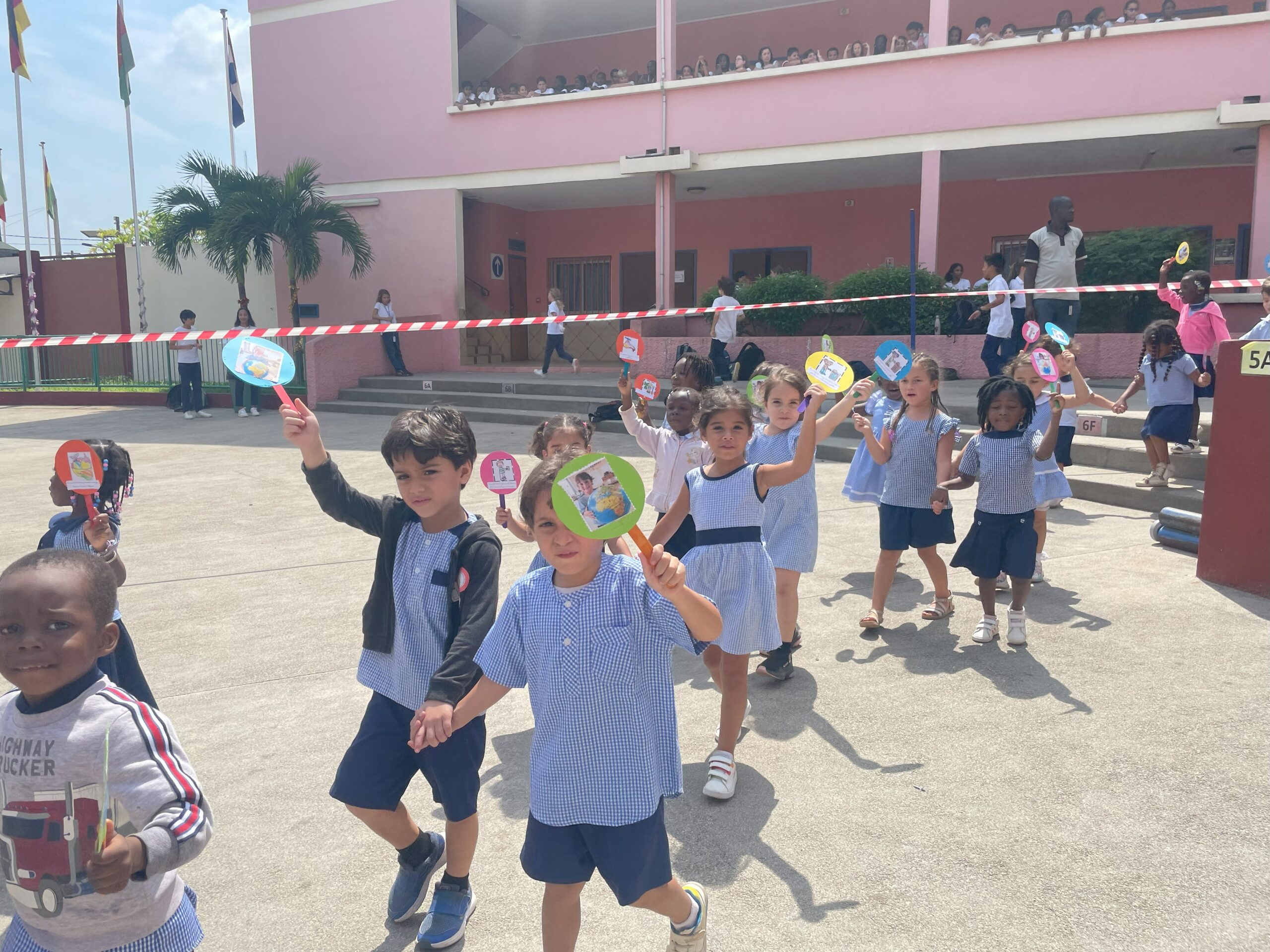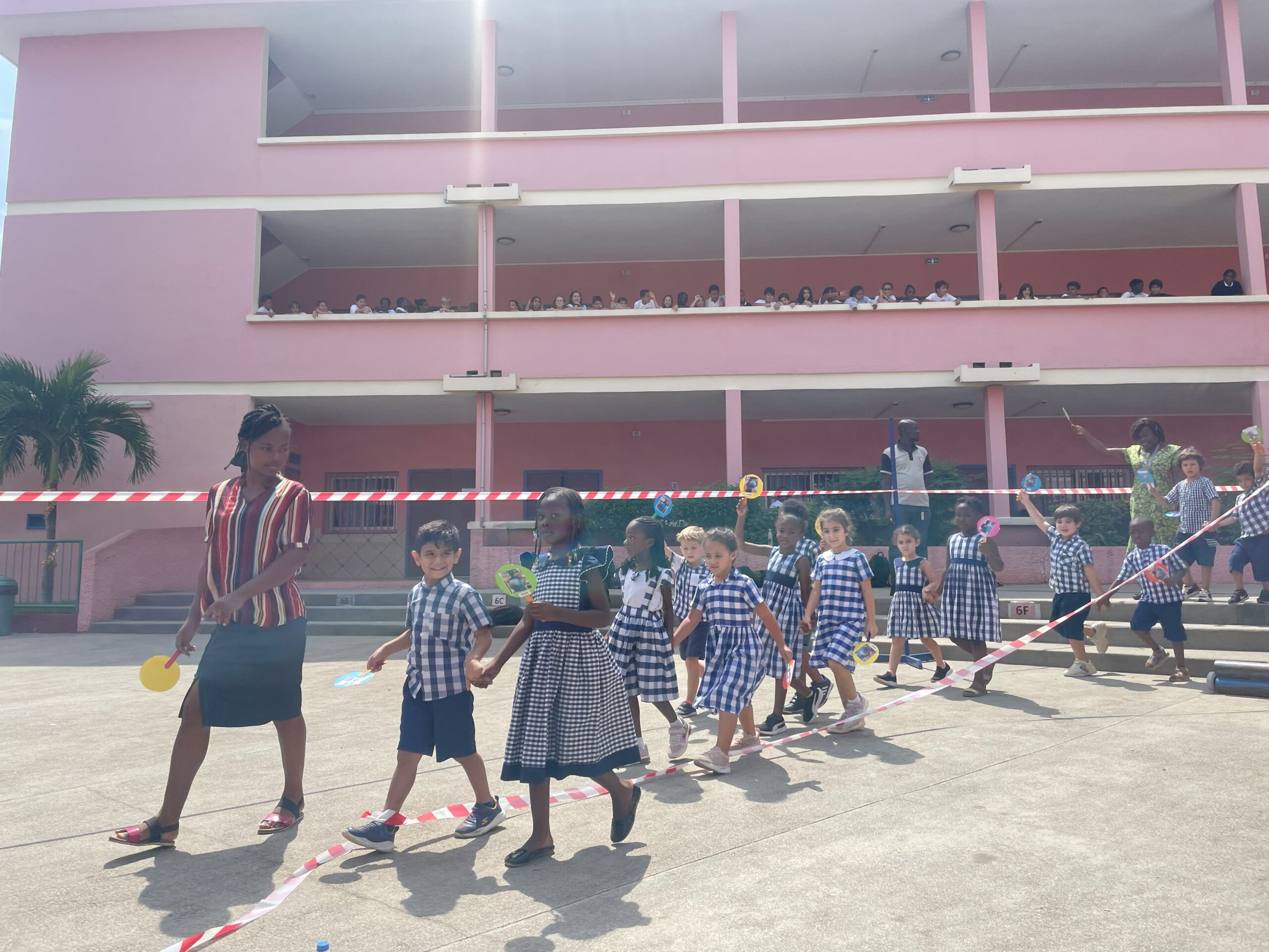 Les élèves de la maternelle ont fait une farandole pour la planète autour de la fontaine du lycée.