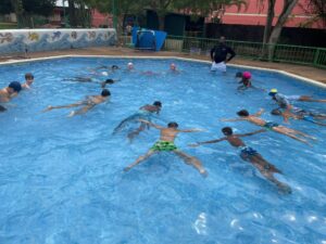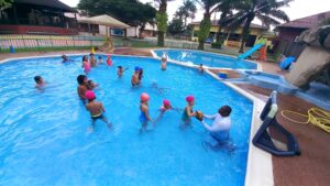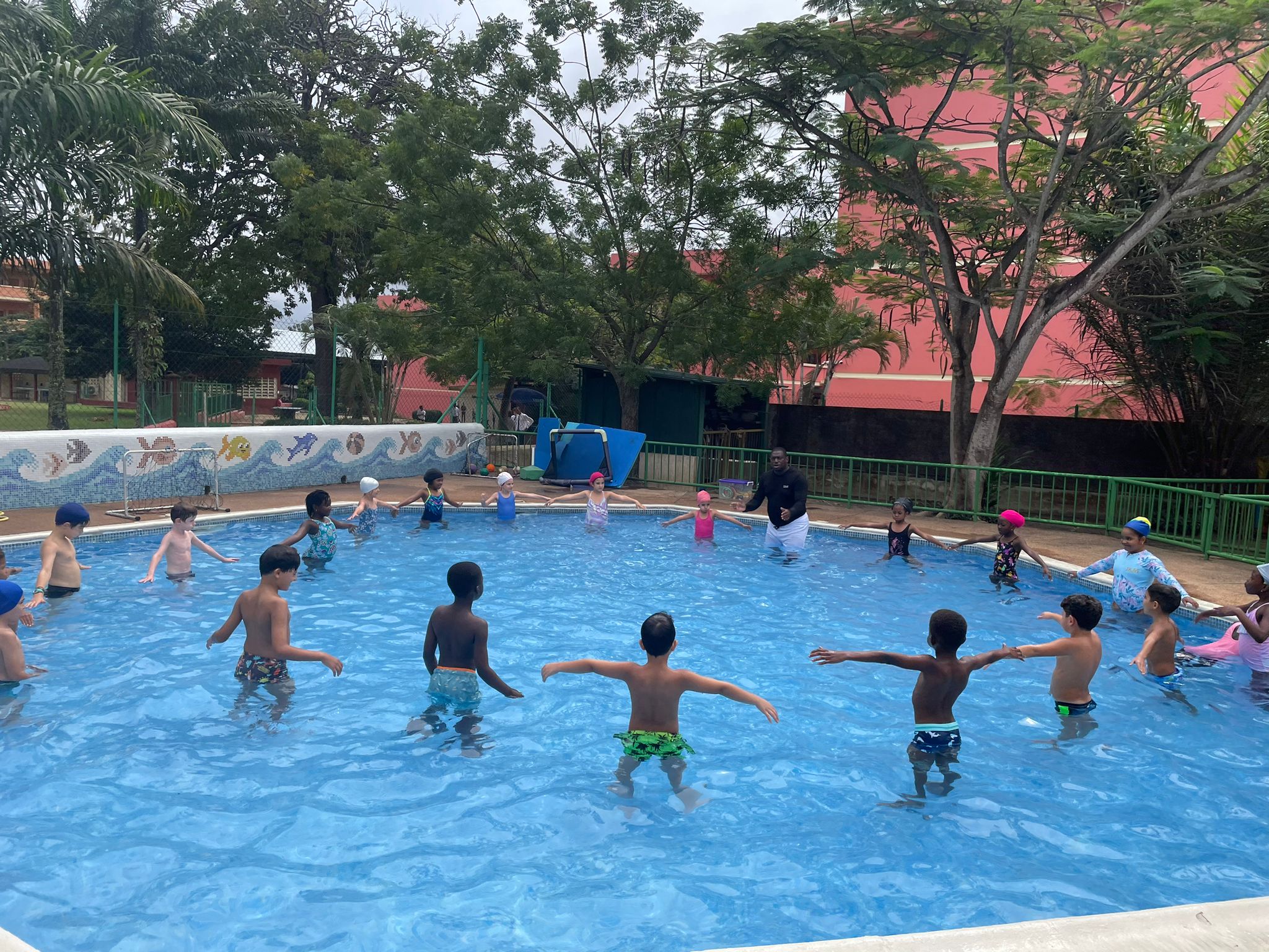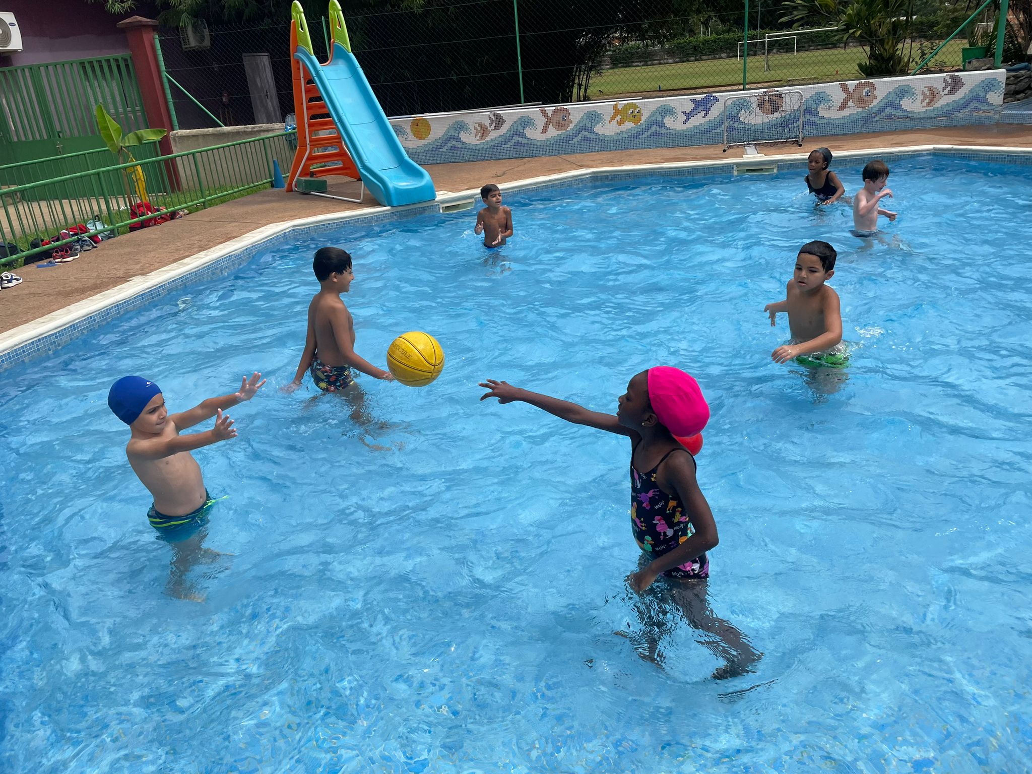 Pour poursuivre sur les valeurs de l’olympisme, les CE1 ont commencé une séquence de water polo dans les deux piscines de la maternelle avec le maître nageur et formidable animateur Anicet Adingra.